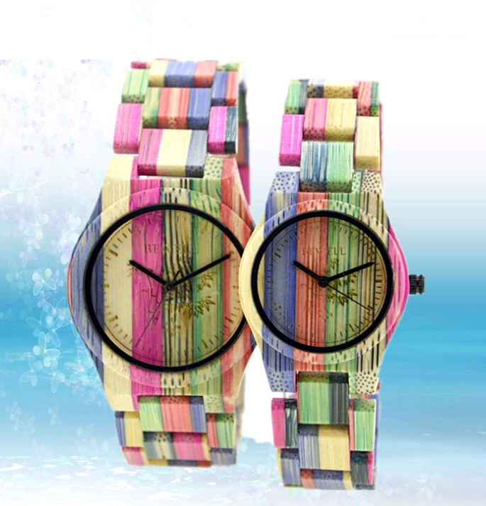 Colored Bamboo Wood Carving Couple Watch