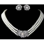 Pearl Rhinestone Necklace Earrings Jewelry Set