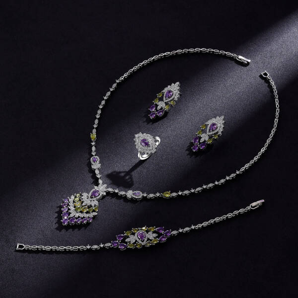 Ancient Style Natural Amethyst Five Leaf Flower Pendant Bracelet